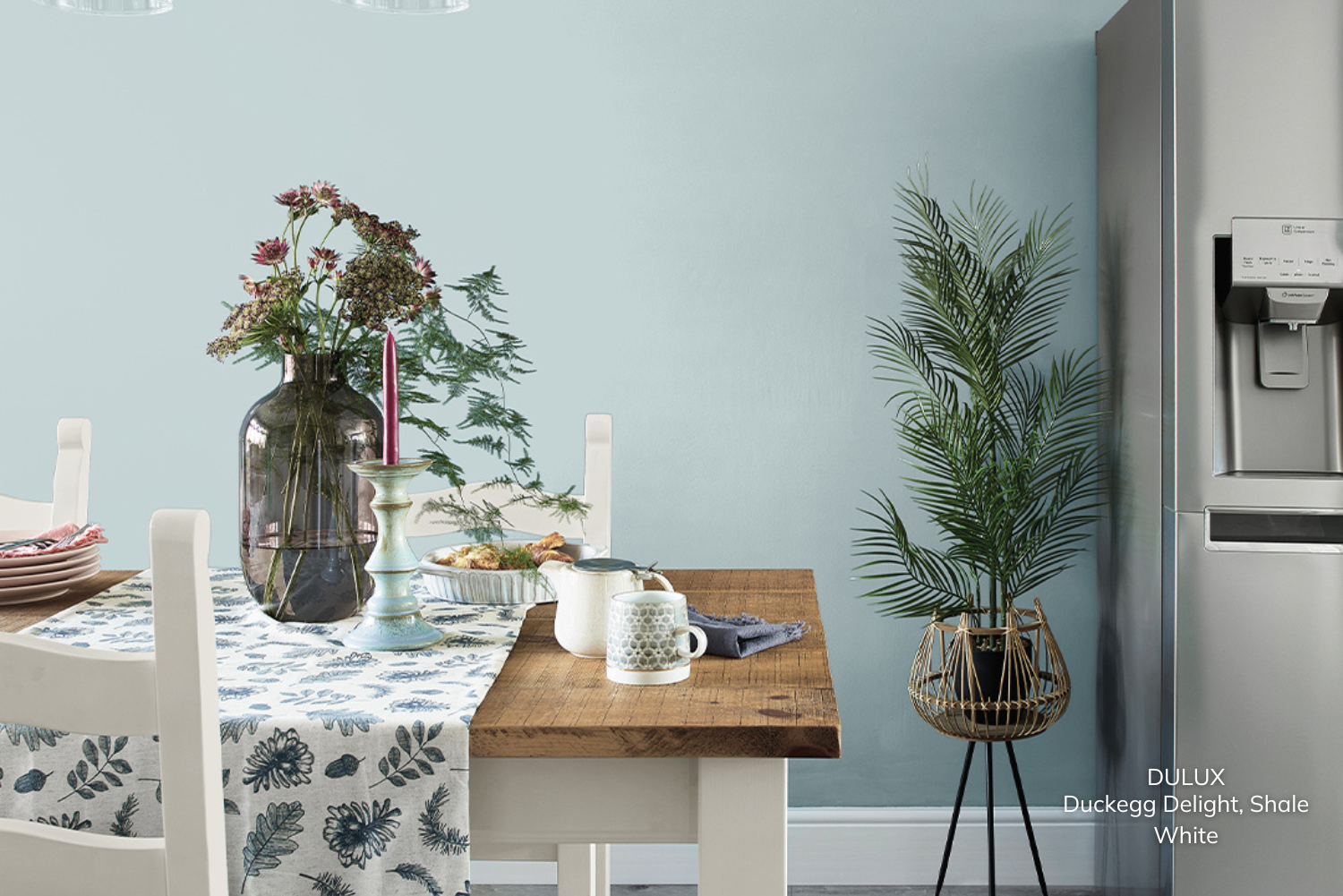 For those who adore subtle charm, baby blue and white are a match made in heaven. For example, Duckegg Delight and Shale White from Dulux are a perfect pair. This pairing exudes a delicate, fresh aesthetic, perfect for creating a serene yet stylish kitchen. Baby blue cabinets or walls bring a soft splash of colour, while crisp white countertops and fixtures ensure the overall look remains clean and modern. It's a palette that feels effortlessly calming, ideal for open-plan or cottage-style kitchens.